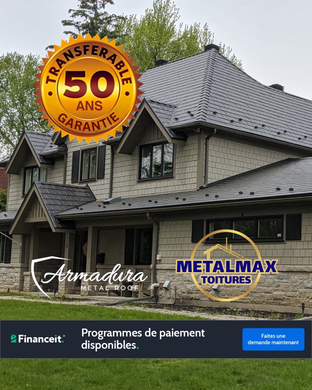 MetalMax™ est installateur et distributeur autorisé de toitures métalliques Armadura au Québec.
